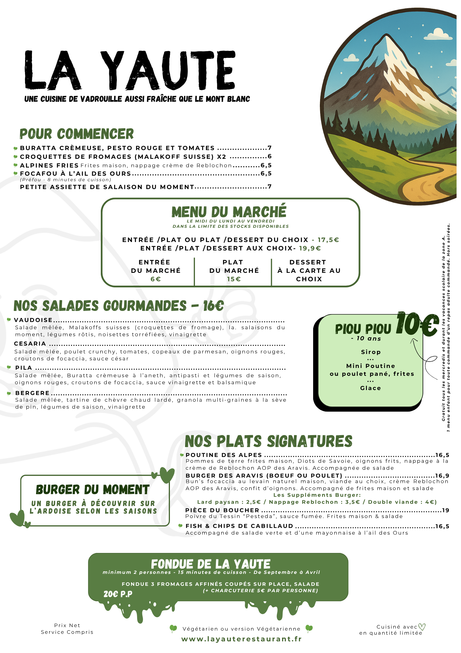 Chaque semaine, nous vous proposons trois menus du marché à découvrir du lundi au vendredi, au restaurant, à emporter ou en livraison.