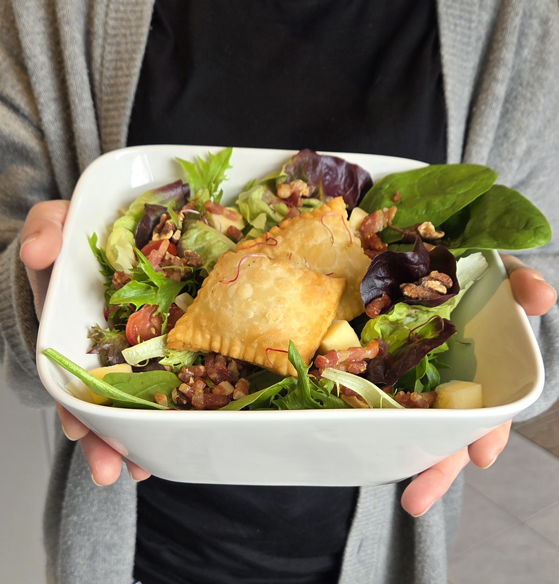Tous nos plats sont imaginés et conçus avec amour par nos quatre mains expertes. Nos focaccias, délicatement préparées, et nos desserts boulanger, pétris avec soin, sont cuits dans notre cuisine. Nous espérons sincèrement que chaque bouchée vous procurera un plaisir inoubliable.