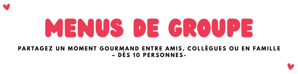 Pour vos repas de groupe — entre amis, en famille ou entre collègues — nous proposons des formules sur mesure dès 10 personnes, disponibles toute l’année.